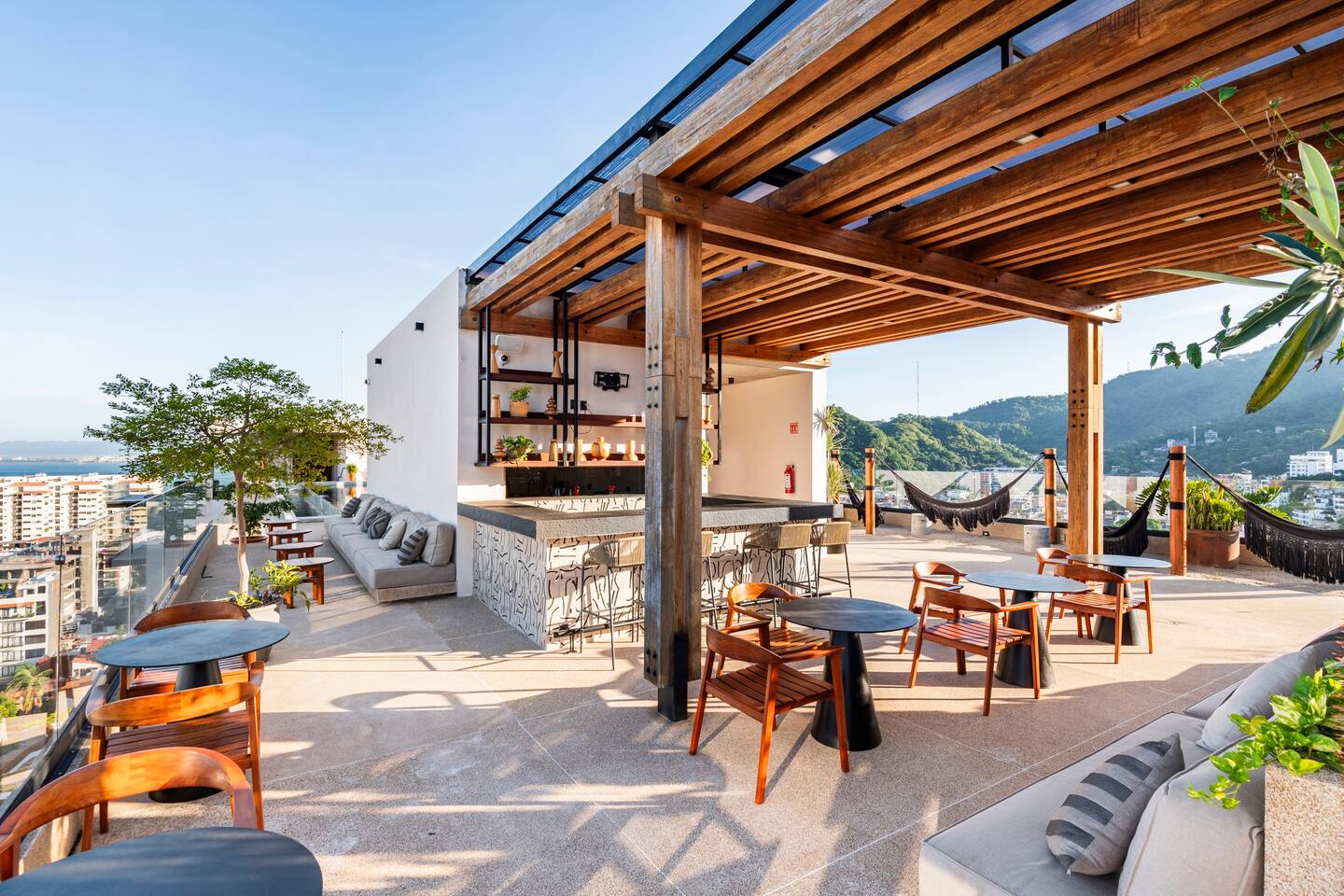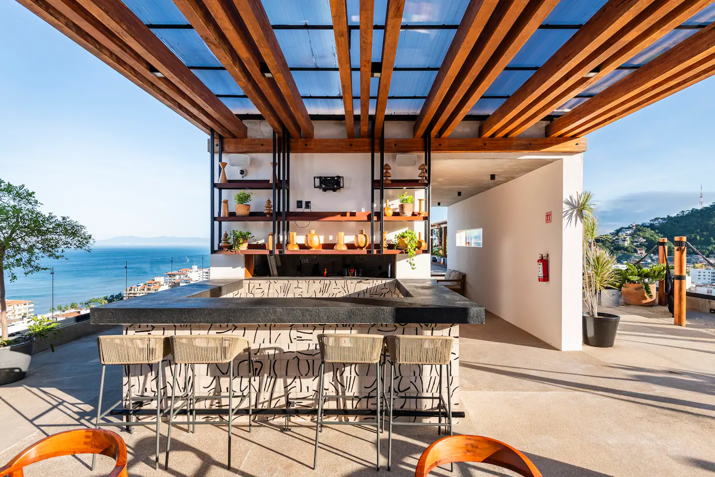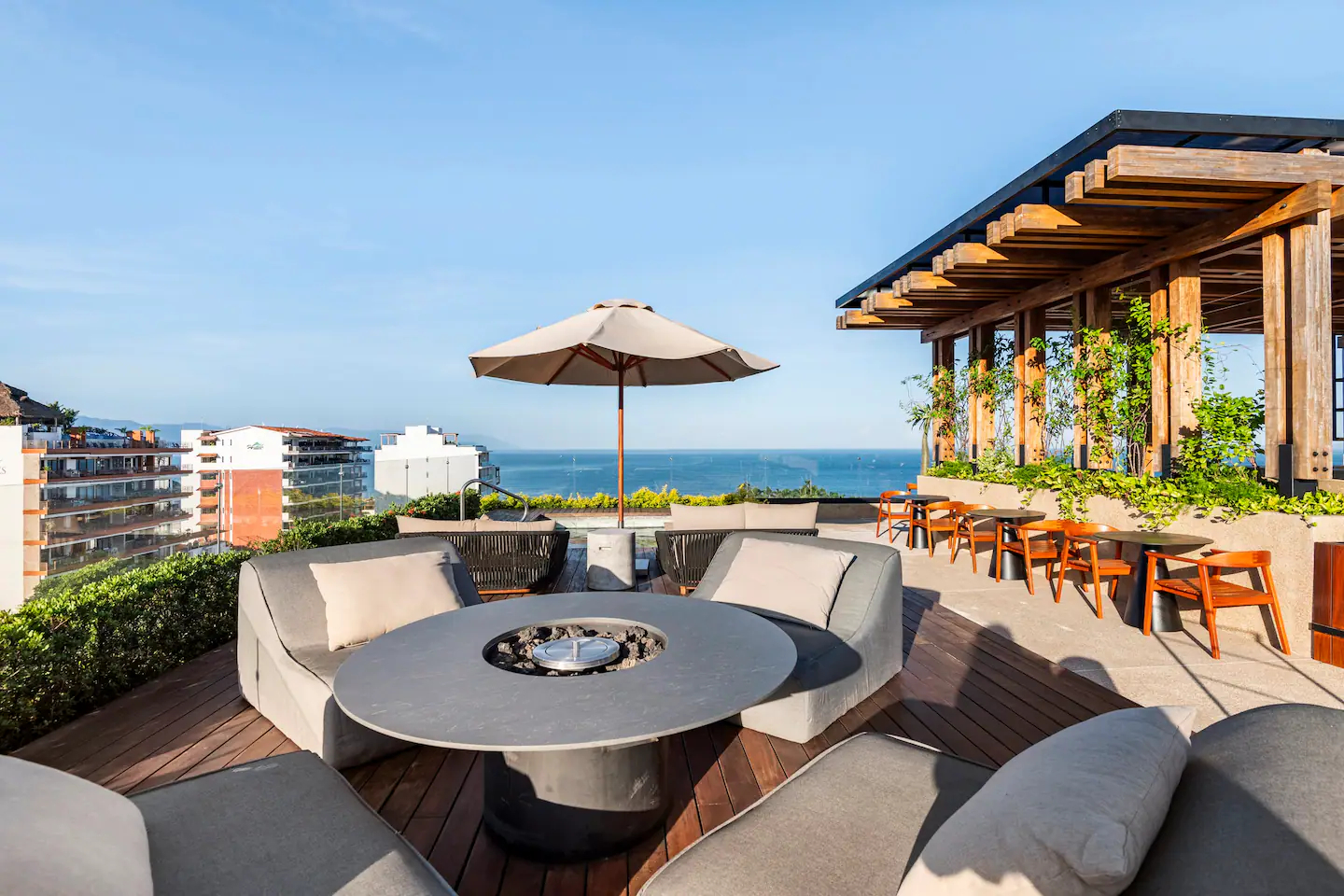 | Fire Pit (Fogatero) | Área de conversación y confort para disfrutar de las noches frescas de Vallarta. | Ambiente íntimo y acogedor bajo las estrellas. |