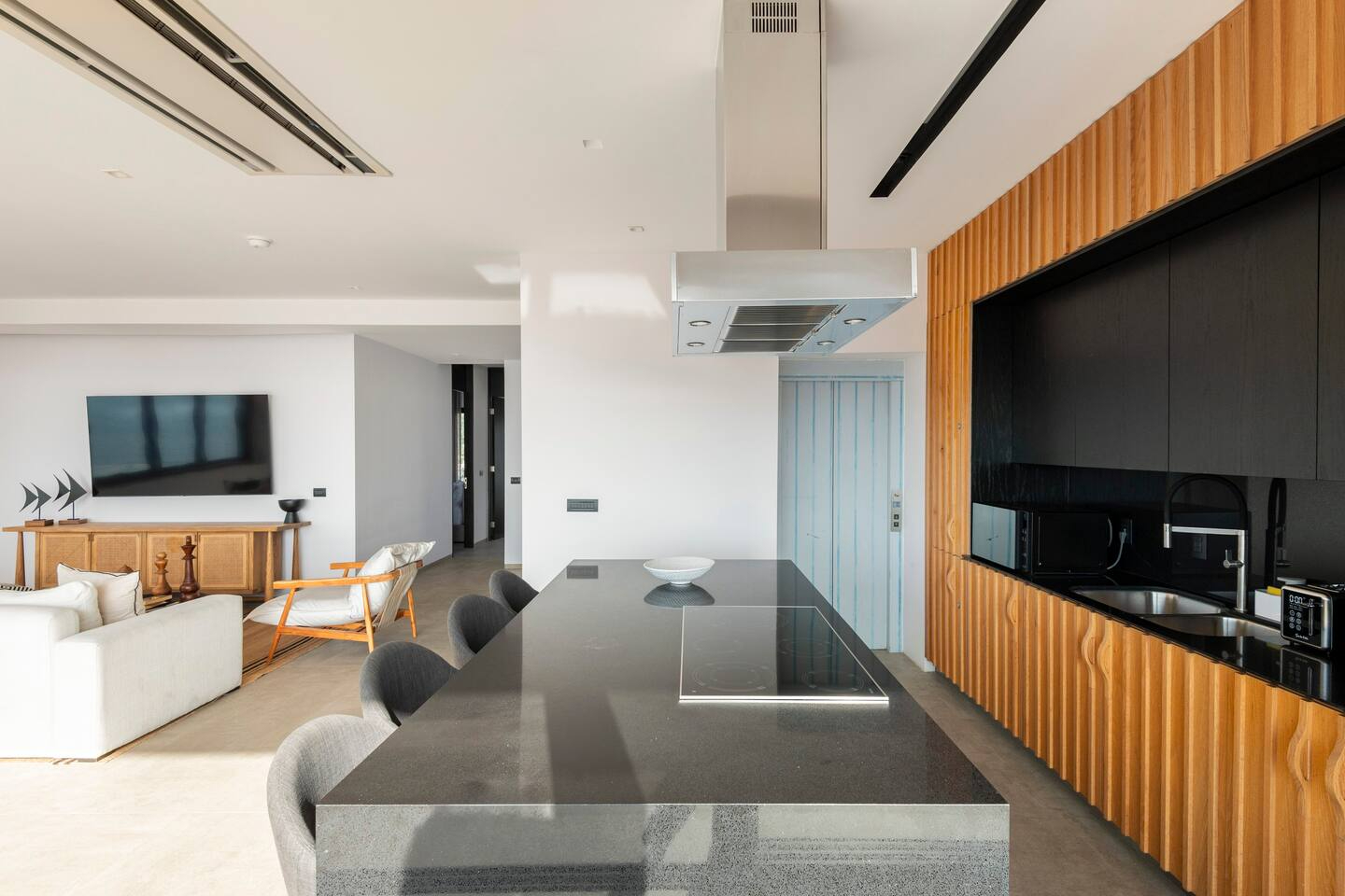 - ✔️ Equipamiento Moderno: Cocina integral de diseño con electrodomésticos de acero inoxidable, sistema de aire acondicionado silencioso y áreas de lavandería.